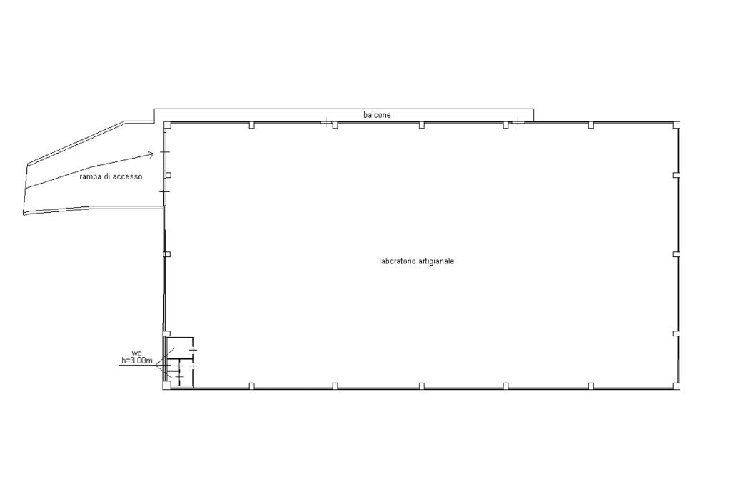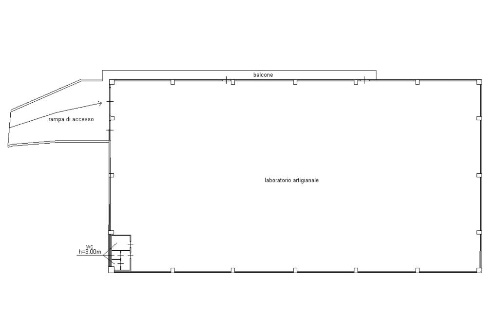 Superficie: capannone ad uso magazzino e deposito posto al piano primo di circa 750mq calpestabili (26,48 x 27,82 =736,674) con rampa di accesso