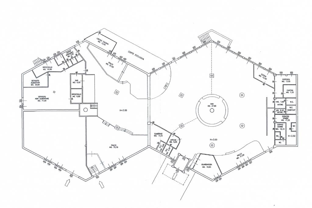 La superficie complessiva del locale è di 675 mq ad uso commerciale