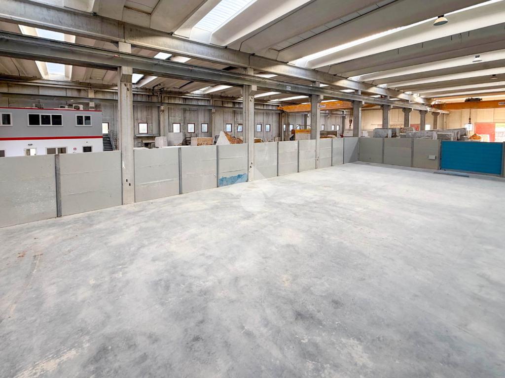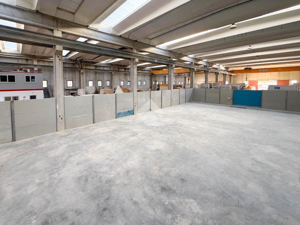Il capannone presenta un’altezza interna di 11 m, è dotato di carroponte di portata fino a 35 tonnellate ed è servito da impianto elettrico completo di prese a 220V e 380V.