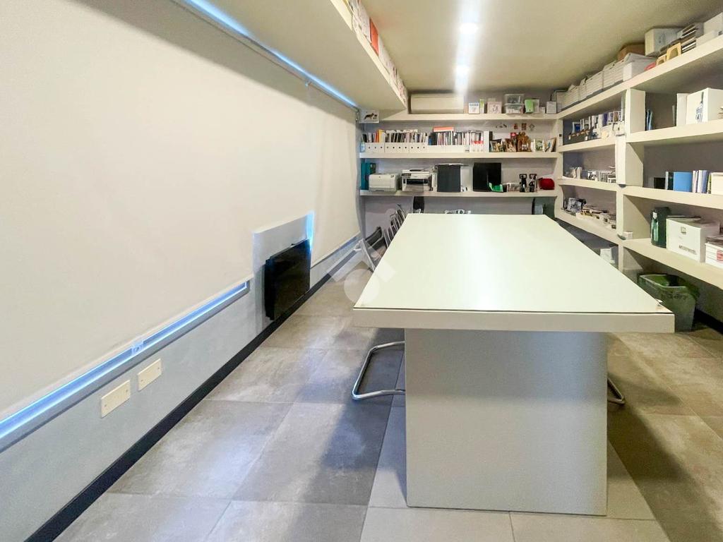 Il magazzino al piano terra ha una superficie complessiva di circa 200 mq che costituiscono un unico ambiente a cui si accede tramite accesso carraio. All’interno del capannone è presente un soppalco attualmente adibito a zona uffici di circa 20 mq.