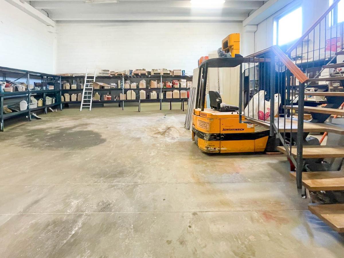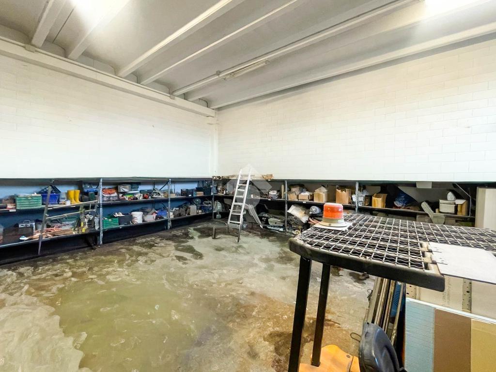 Il magazzino al piano terra ha una superficie complessiva di circa 200 mq che costituiscono un unico ambiente a cui si accede tramite accesso carraio. All’interno del capannone è presente un soppalco attualmente adibito a zona uffici di circa 20 mq.