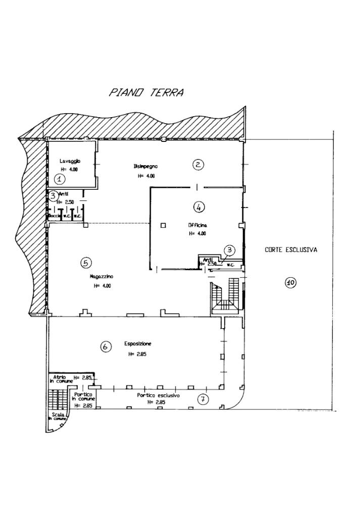 piano terra di circa 460 mq composto da blocco servizi igienici, blocco uffici di 126 mq e area laboratorio/magazzino di circa 330 mq