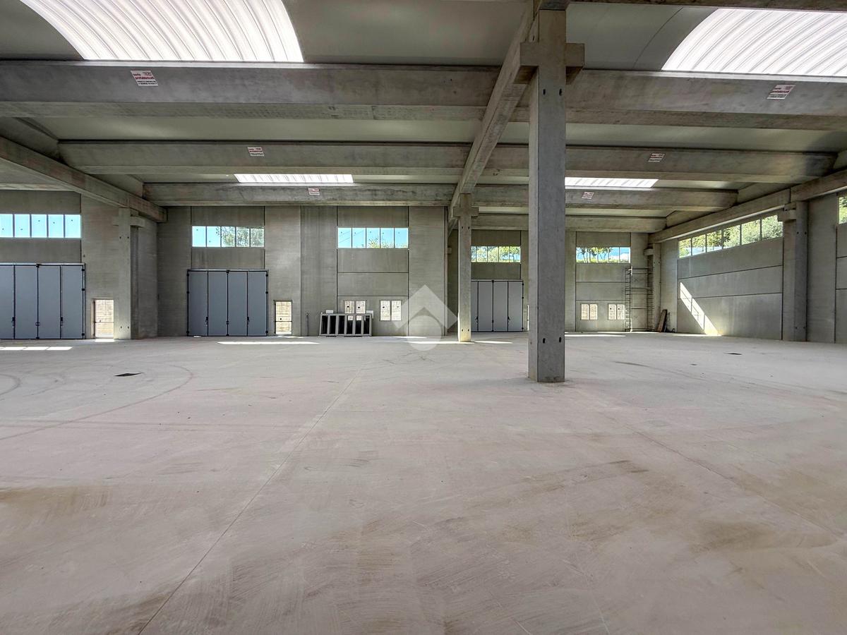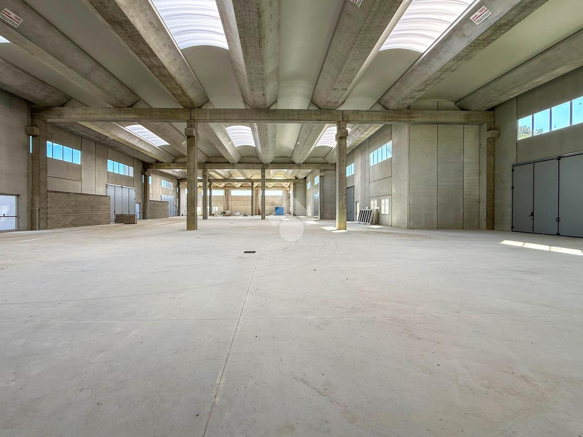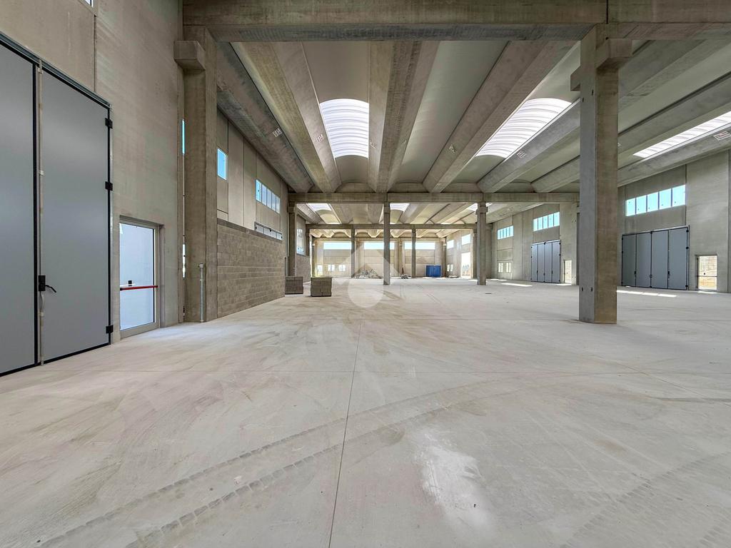 Il capannone verrà consegnato con pavimentazione industriale in calcestruzzo, mensole predisposte per carroponte, serramenti a taglio termico e anello antincendio.