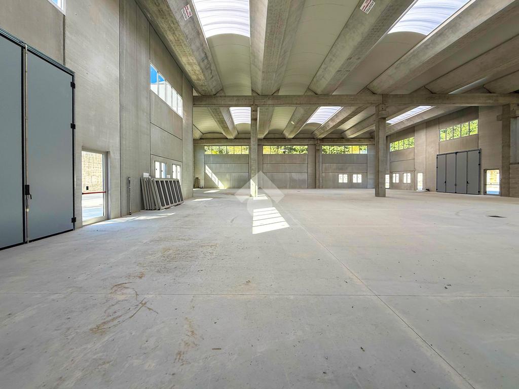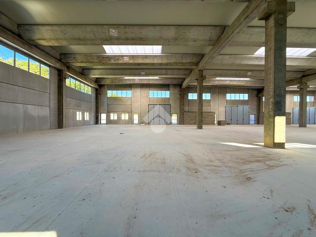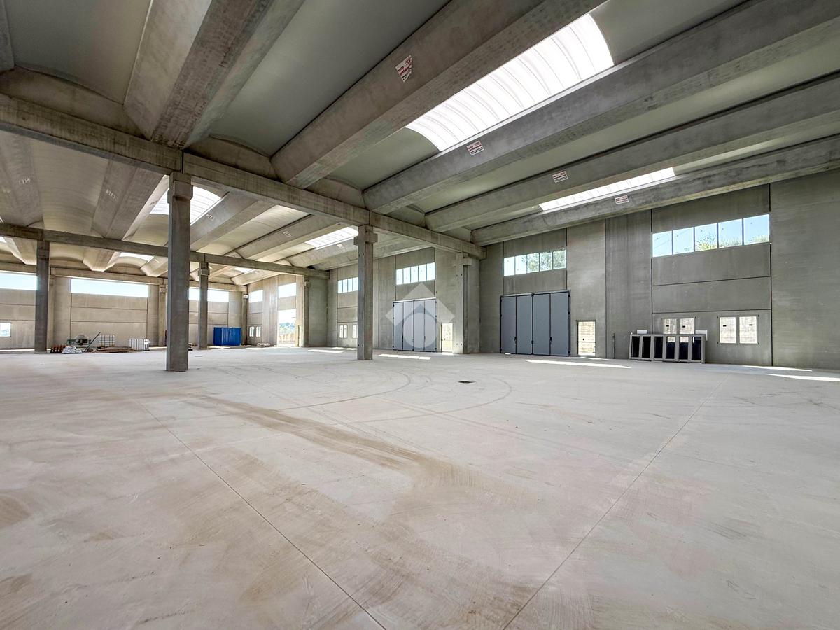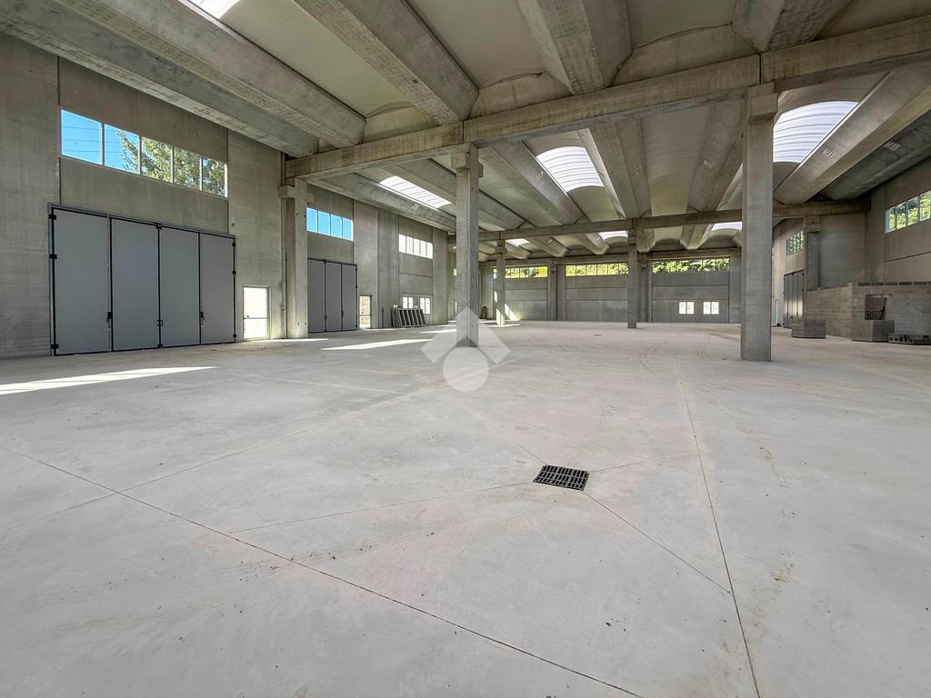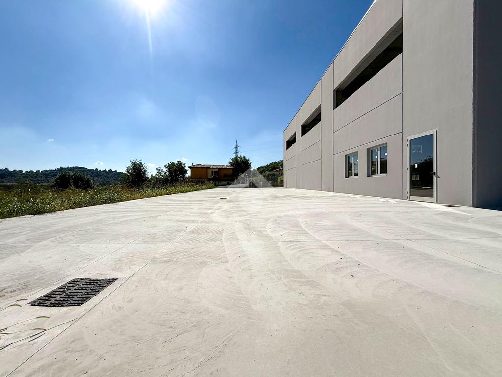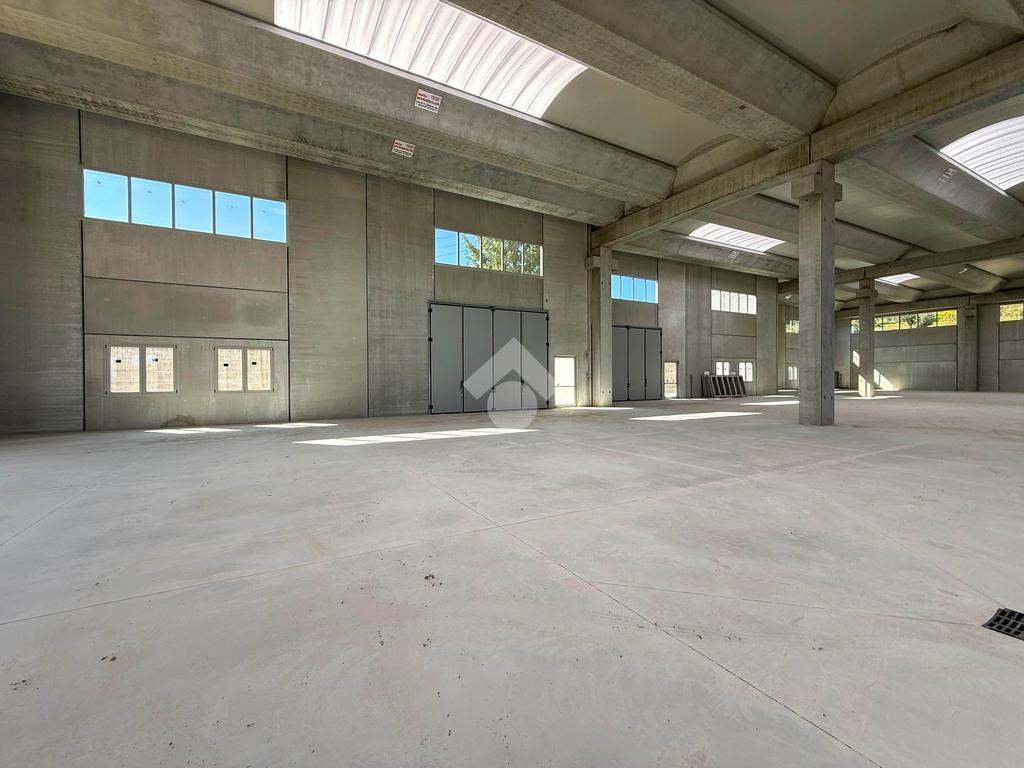 Il capannone verrà consegnato con pavimentazione industriale in calcestruzzo, mensole predisposte per carroponte, serramenti a taglio termico e anello antincendio.