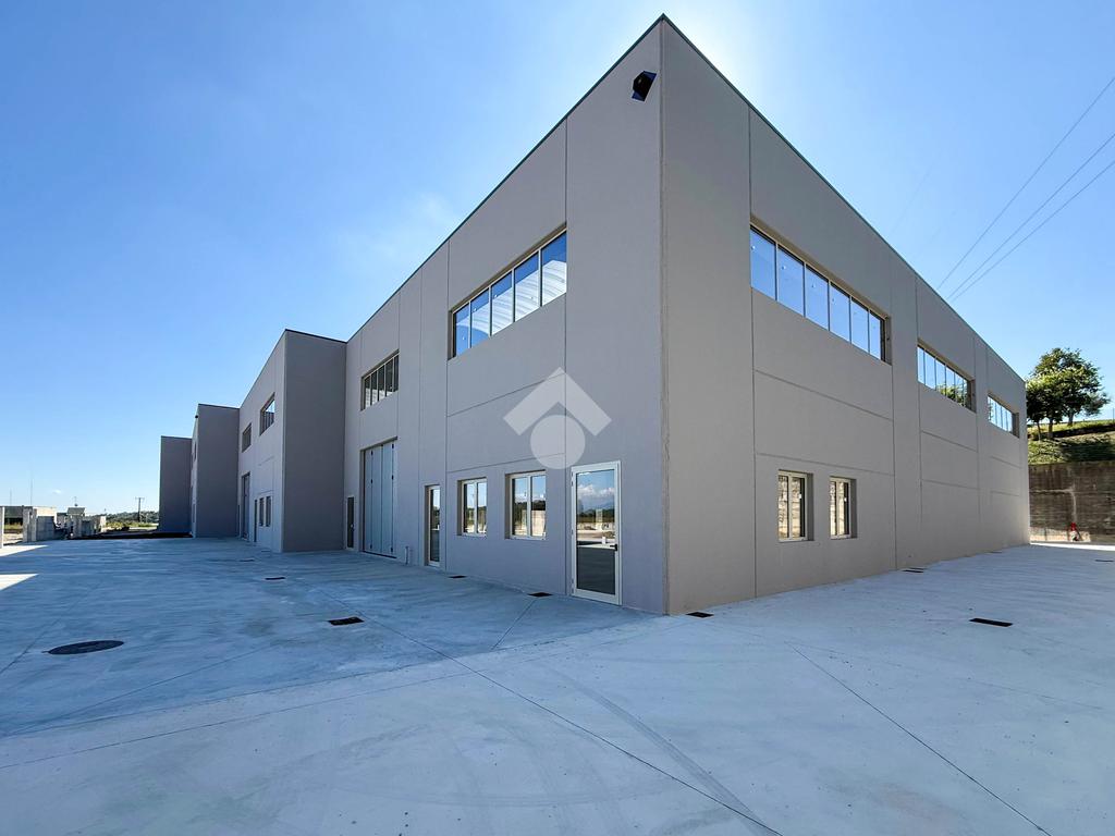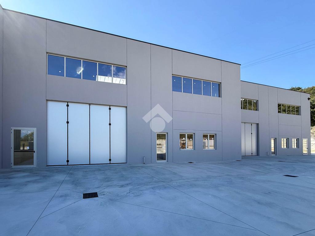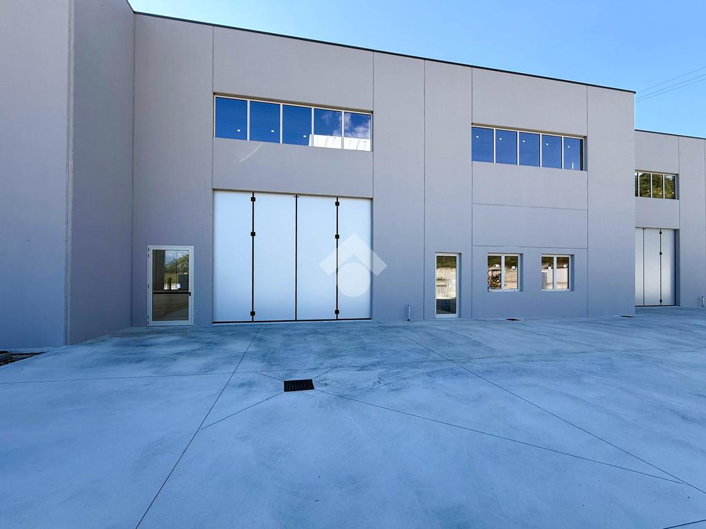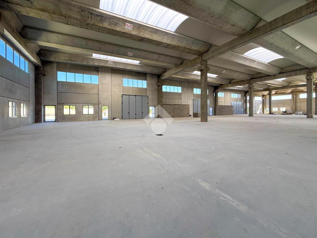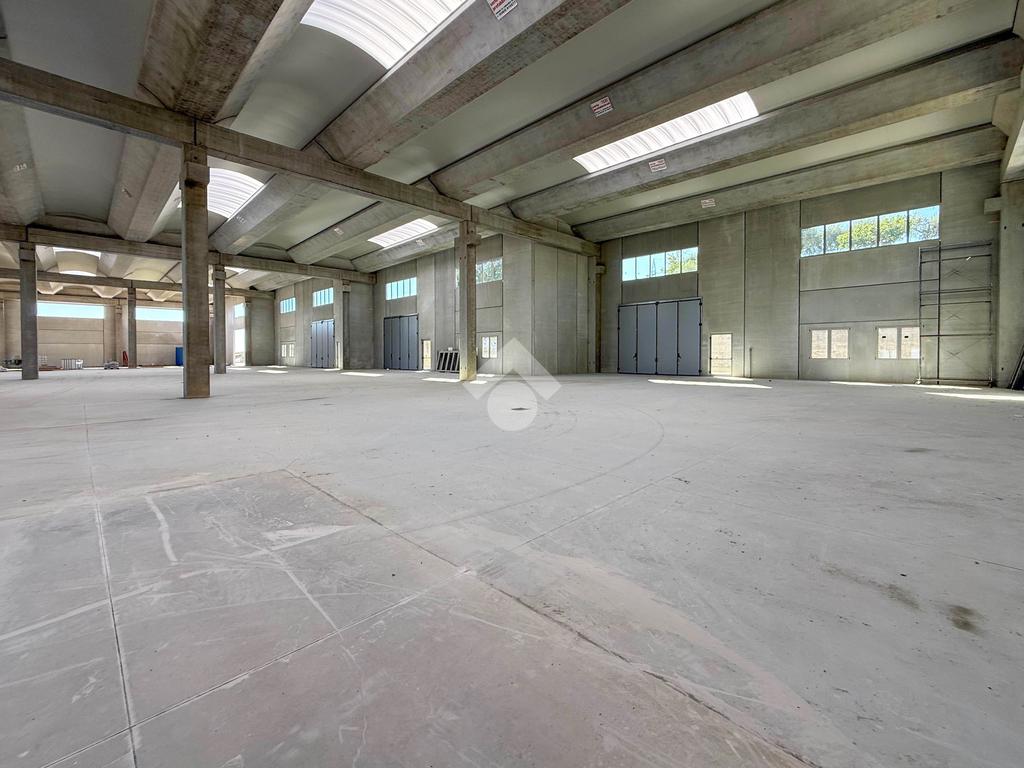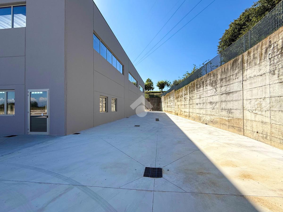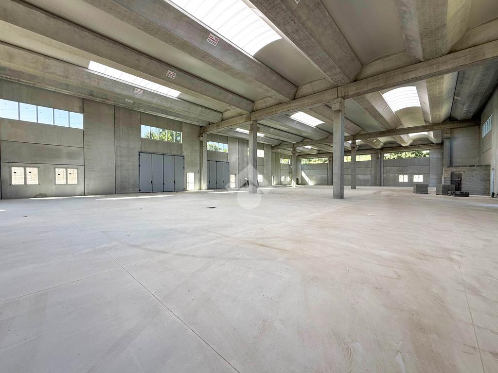 Il capannone verrà consegnato con pavimentazione industriale in calcestruzzo, mensole predisposte per carroponte, serramenti a taglio termico e anello antincendio.